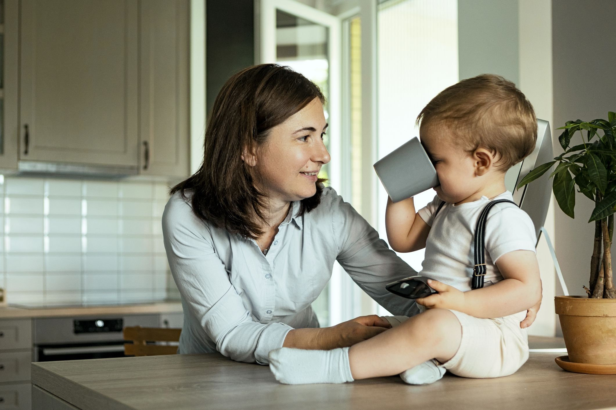 As you speak, you are modeling language for your child. Kids love to imitate! If you calmly say “Cup?” as he’s reaching for it, he will eventually learn to say the word rather than simply pointing to it. Give him a little time to repeat the word before giving him his cup. This, of course, takes time, but before you know it, your little one will be using these words independently.